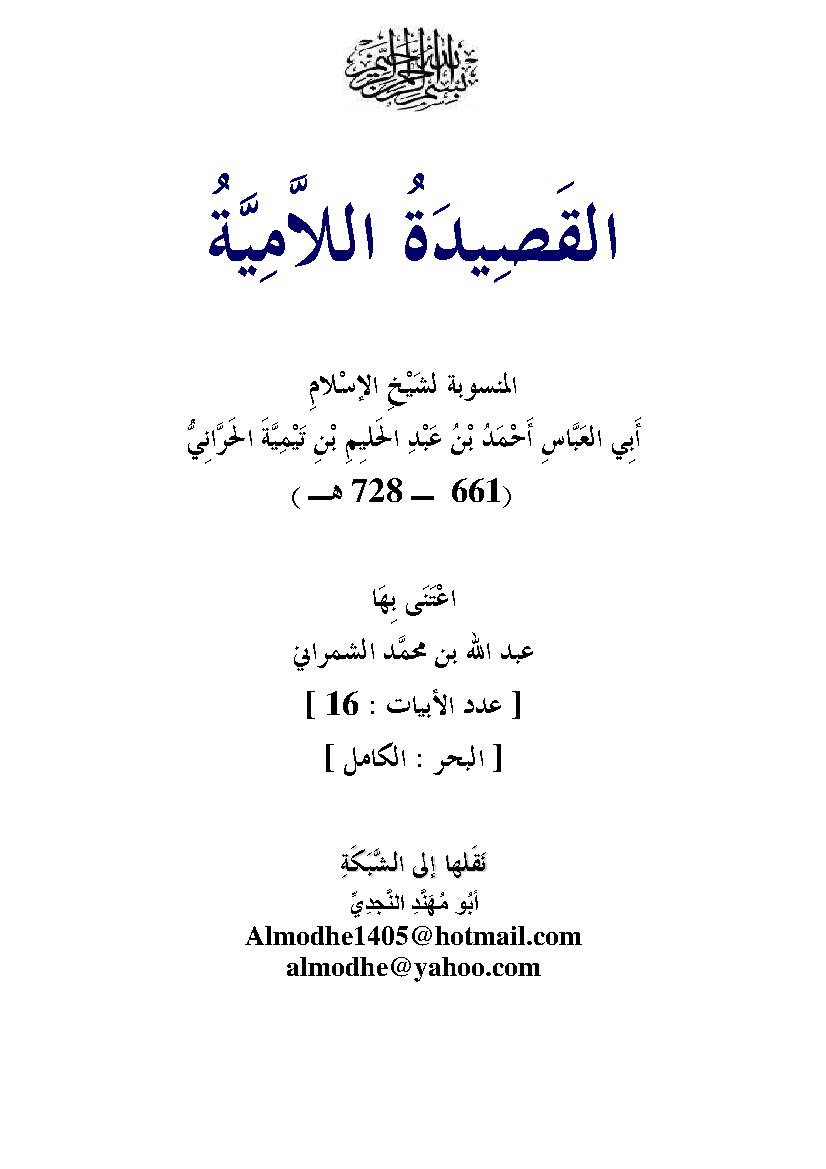 تحميل القصيدة اللامية في السنة لشيخ الإسلام ابن تيمية Pdf