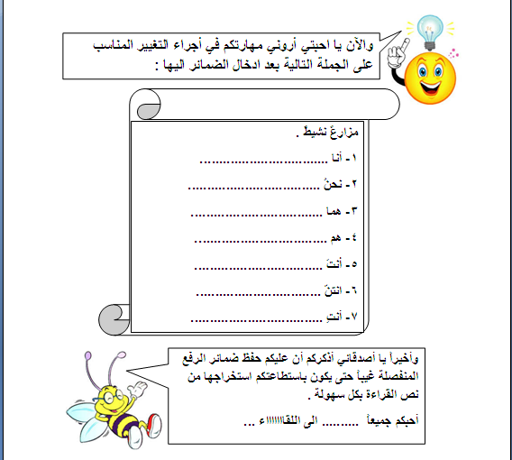 ورق عمل ضمائر الرفع المنفصلة لغة عربية صف خامس فصل أول مدرستي الامارتية